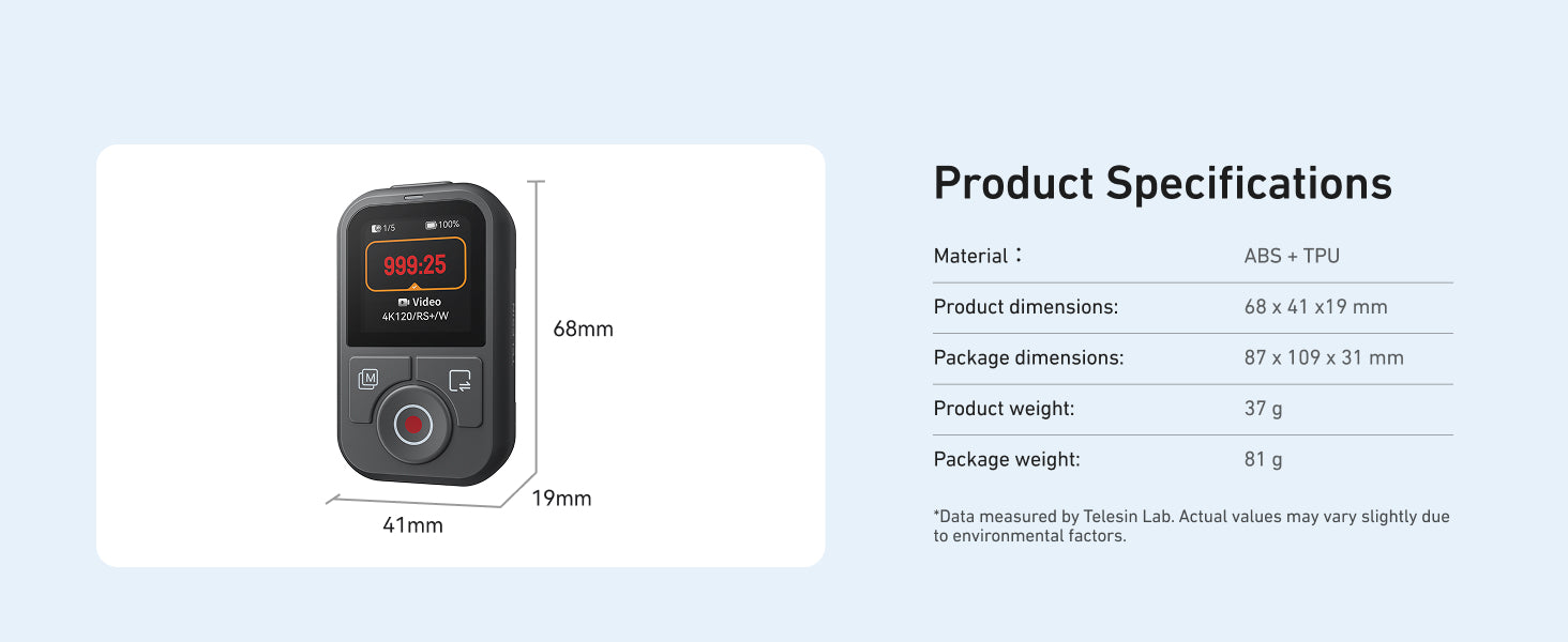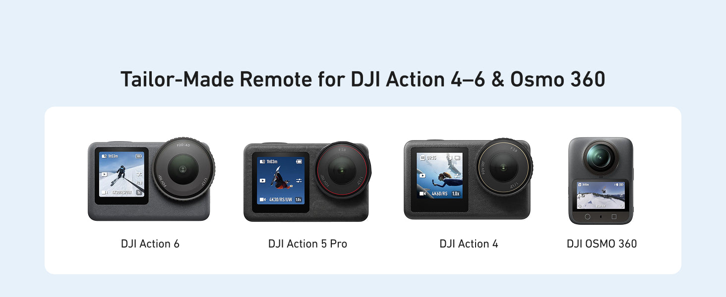 The TELESIN Action Cameras Remote Control is designed specifically for DJI Action 4-6 and Osmo 360 series cameras. It integrates seamlessly with these devices, offering smooth, precise control for all your shooting needs.