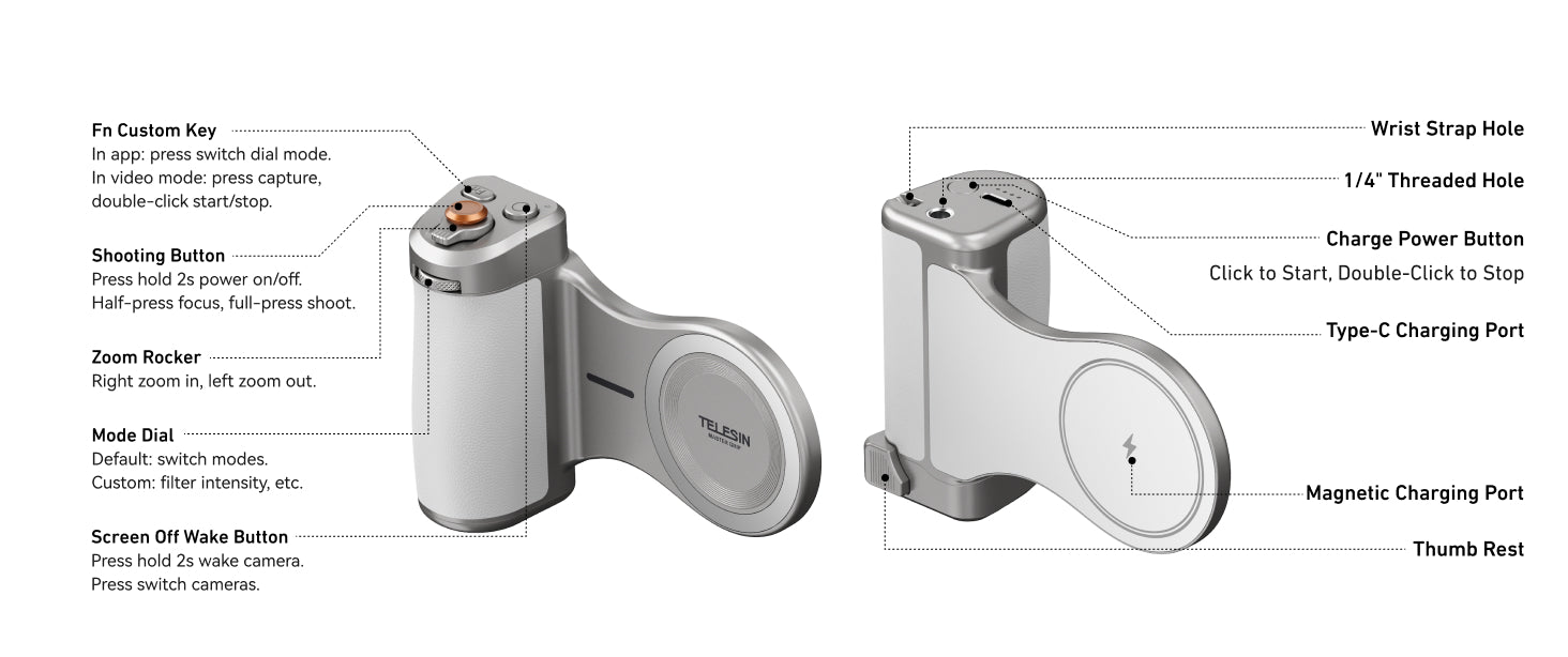 TELESIN has long been trusted in the action-camera and smartphone accessory world. Magnetic Pro Shot Imaging Camera Grip continues that as a 2026 flagship phone camera grip built from real creator feedback: