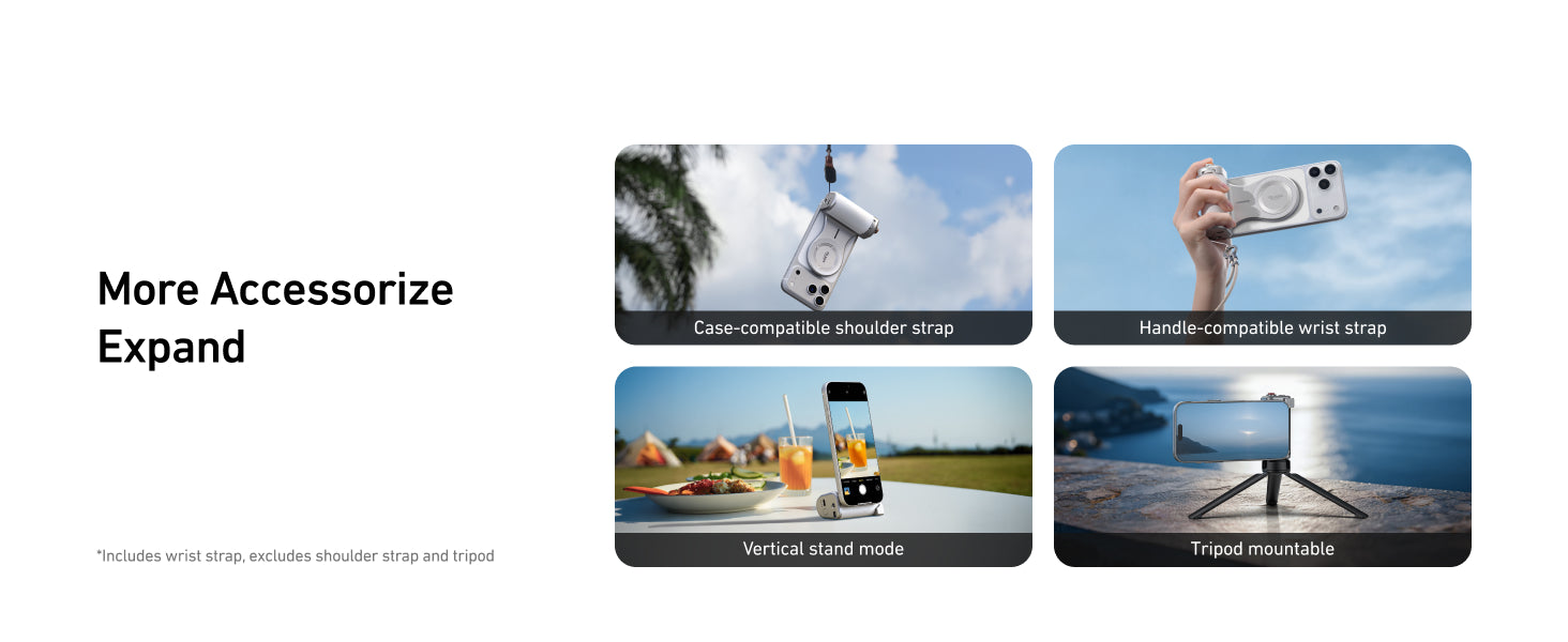 | A complete creator phone grip kit | Optional Creator Flash Combo Kit with integrated magnetic flash |