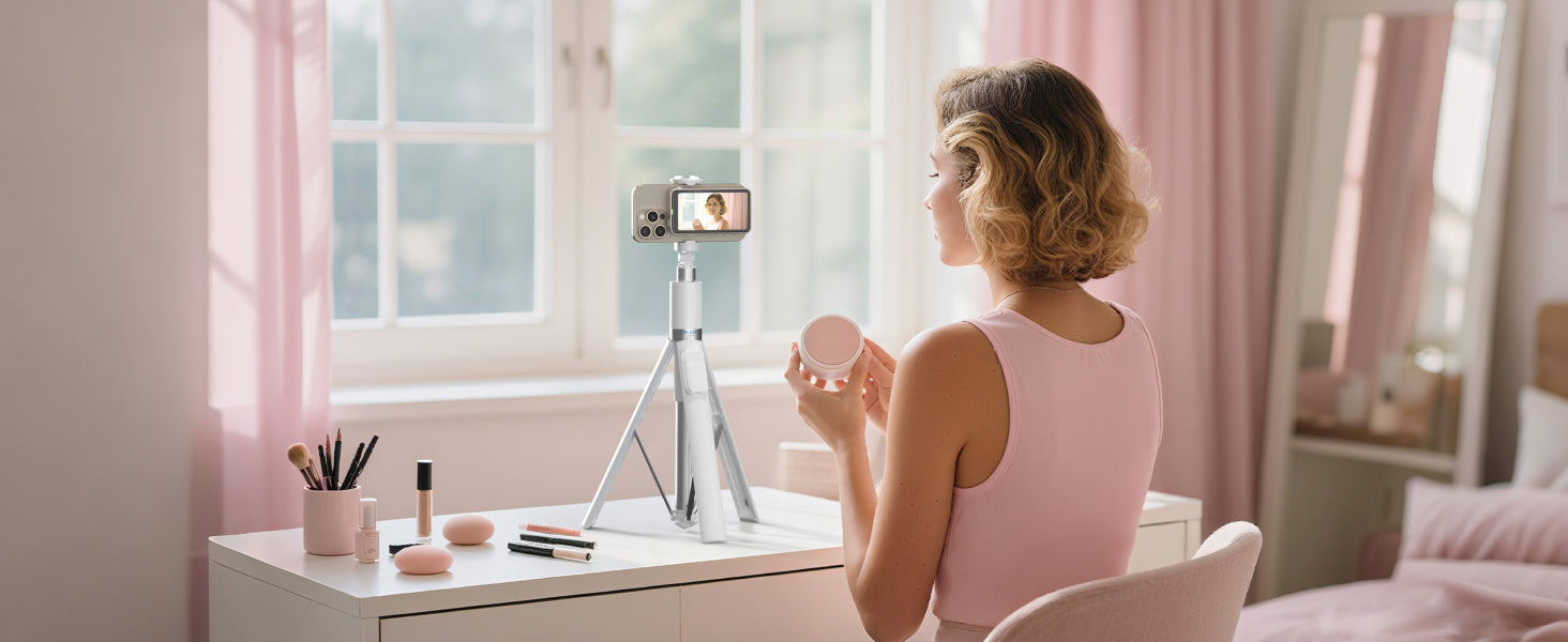 For those who enjoy shooting outdoors or while traveling, this device allows you to easily film with your rear camera and see yourself while keeping your setup compact and lightweight.