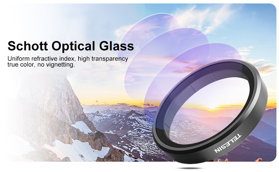The TELESIN UV Protection Lens Filter uses high-quality Schott optical glass. This glass offers a uniform refractive index and high transparency, which are crucial for keeping your image clean and sharp. Light passes through with minimal loss, so you retain fine detail and contrast in both photo and video.