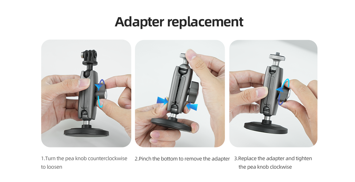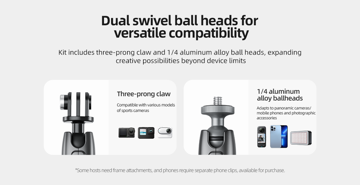 4. The accessories are equipped with a three-claw ball head and 1/4 stud ball head, suitable for more models.