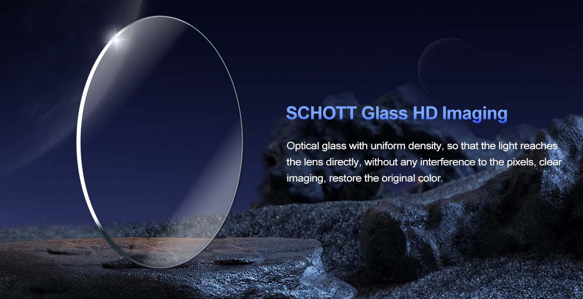 1. Optical glass with uniform density, so that the light reaches the lens directly, without any interference to the pixels, clear imaging, restores the original color.