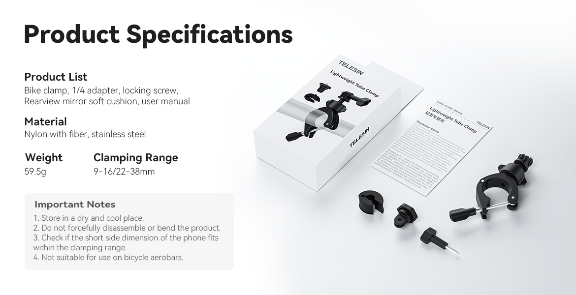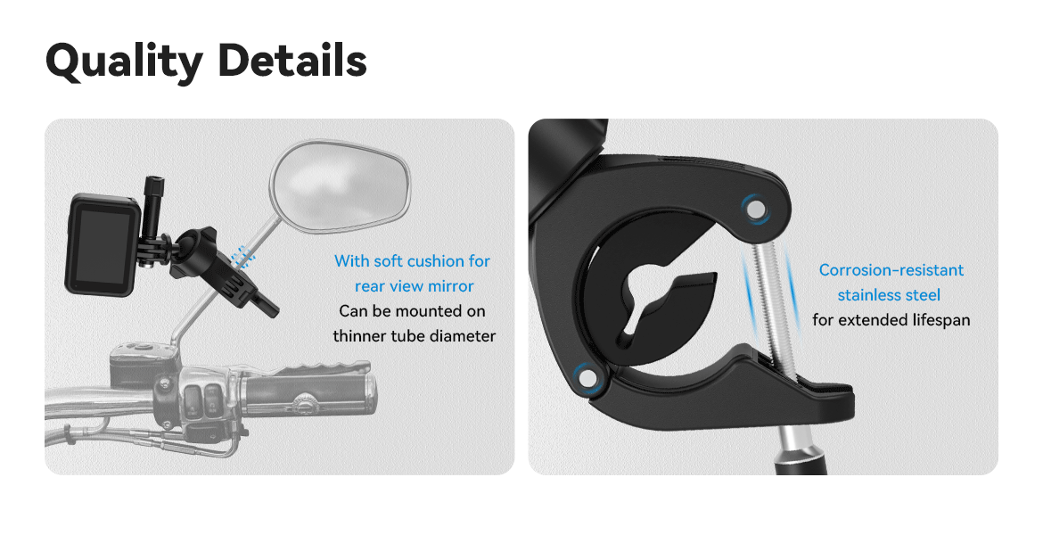 4. The clamping range is 9-16/22-38mm, which can be used to clamp bicycles, motorcycle rearview mirrors and other pipe diameters;