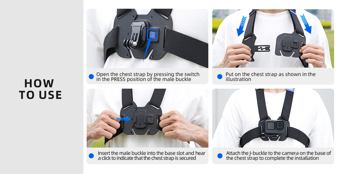 1. Vest-style chest belt. Center button buckle design, easy to wear, no need to put on the head.