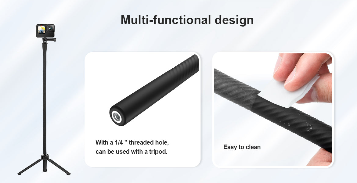 2. Flexible and changeable, can be bent at will; it can be used as an octopus, a selfie stick, a desktop stand, a hanging neck stand and a simple stabilizer;