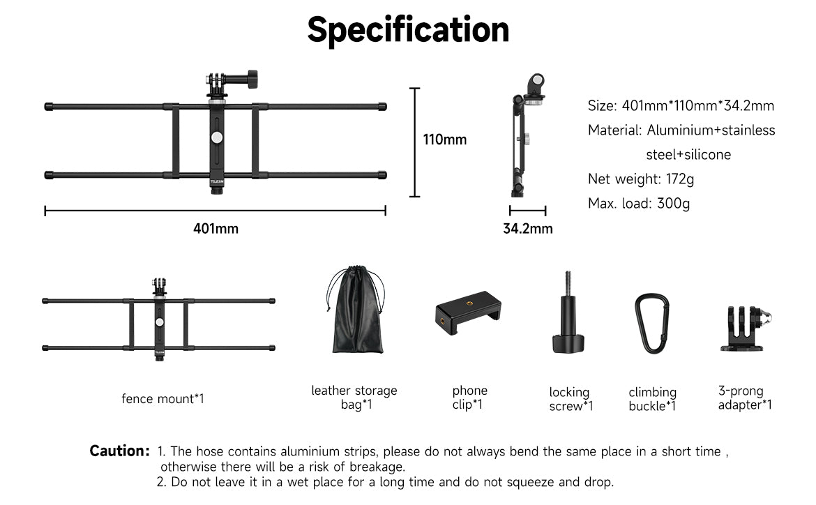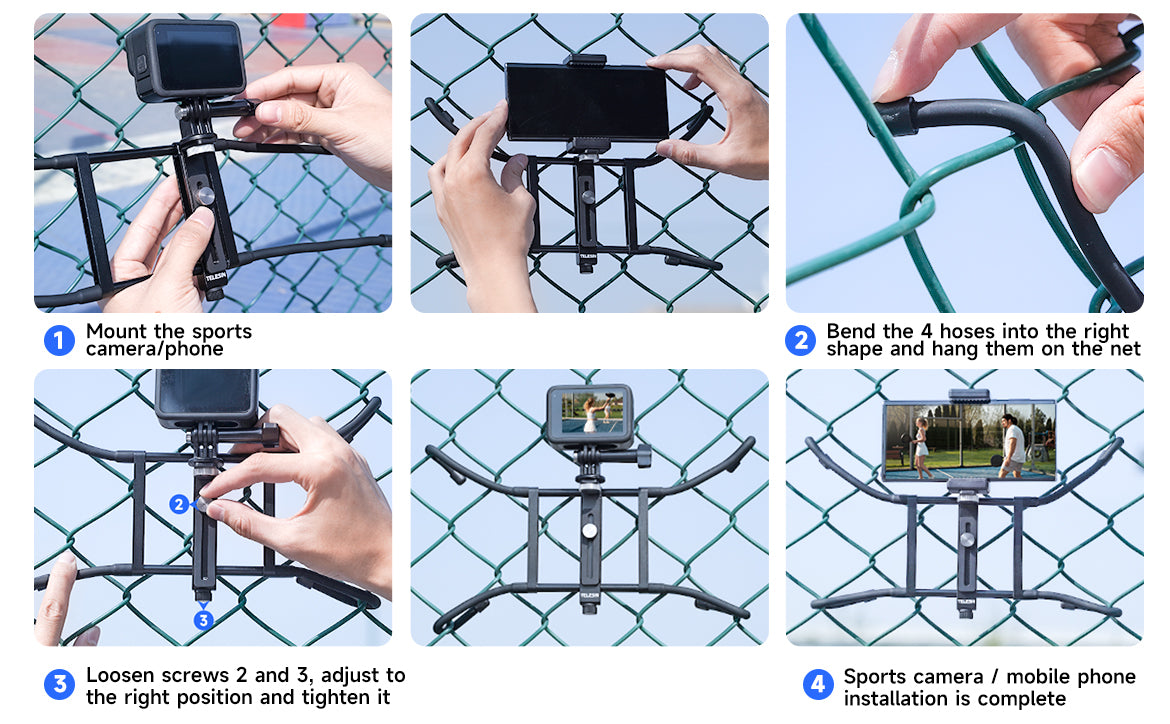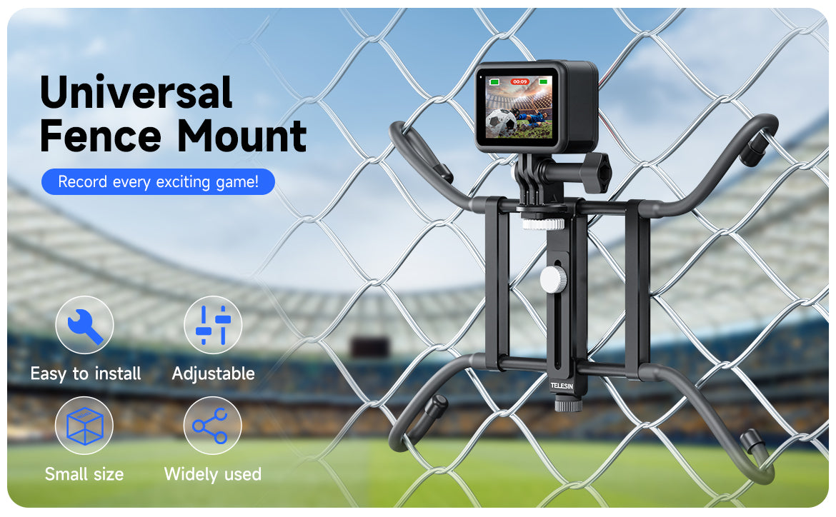 TELESIN Adjustable Universal Fence Mount for Action Cameras/ Phones $29.99 Category: 3C Electronics Fence Mount Use Teaching Video