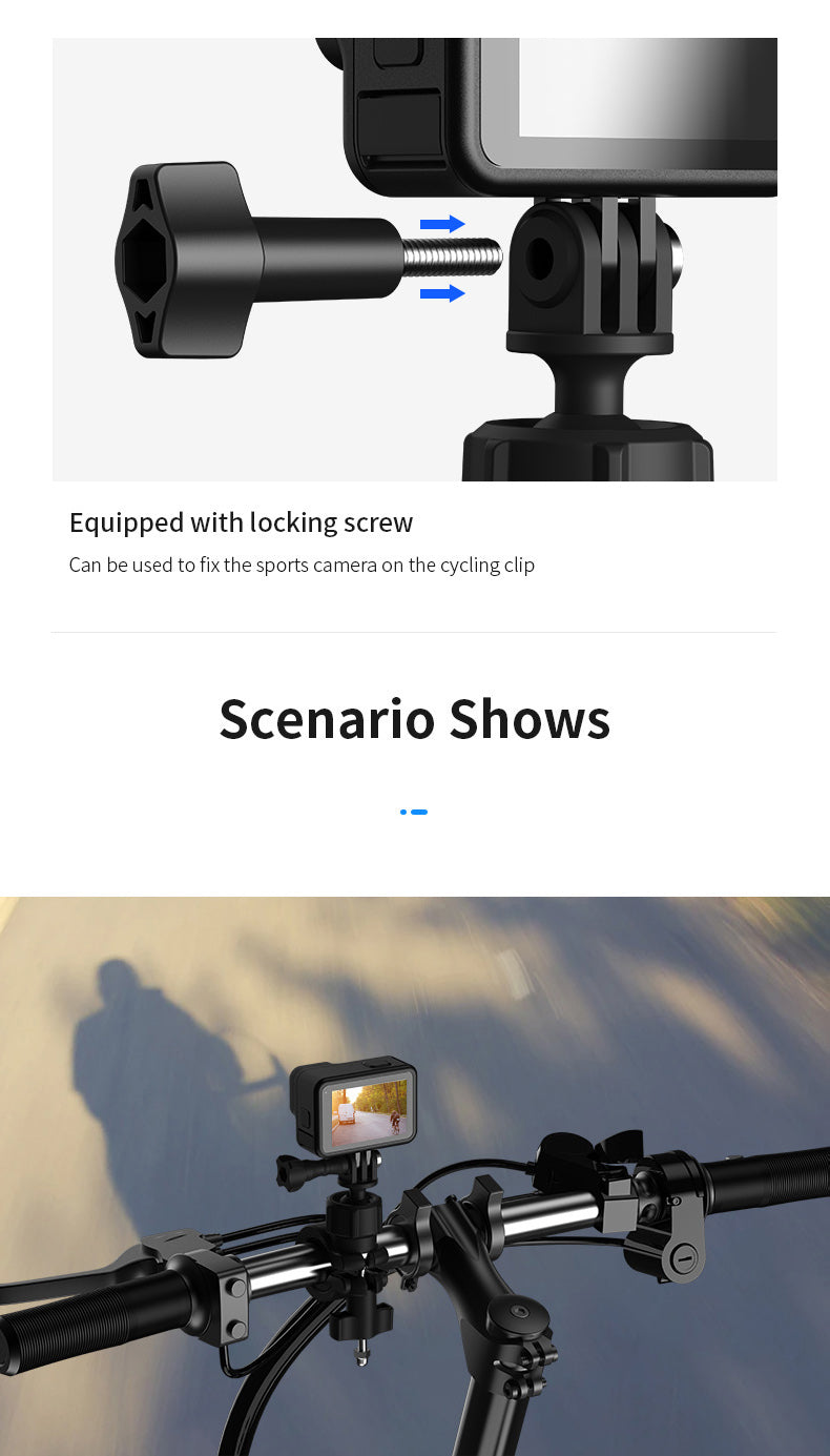 2. Quick disassembly and assembly, no tools required, loosen the clamp knob to disassemble and install, easy and convenient, and comes with a GoPro universal adapter.
