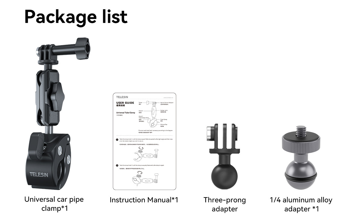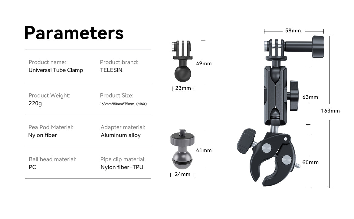 TELESIN Plastic Universal Handlebar Mount Tube Clamp