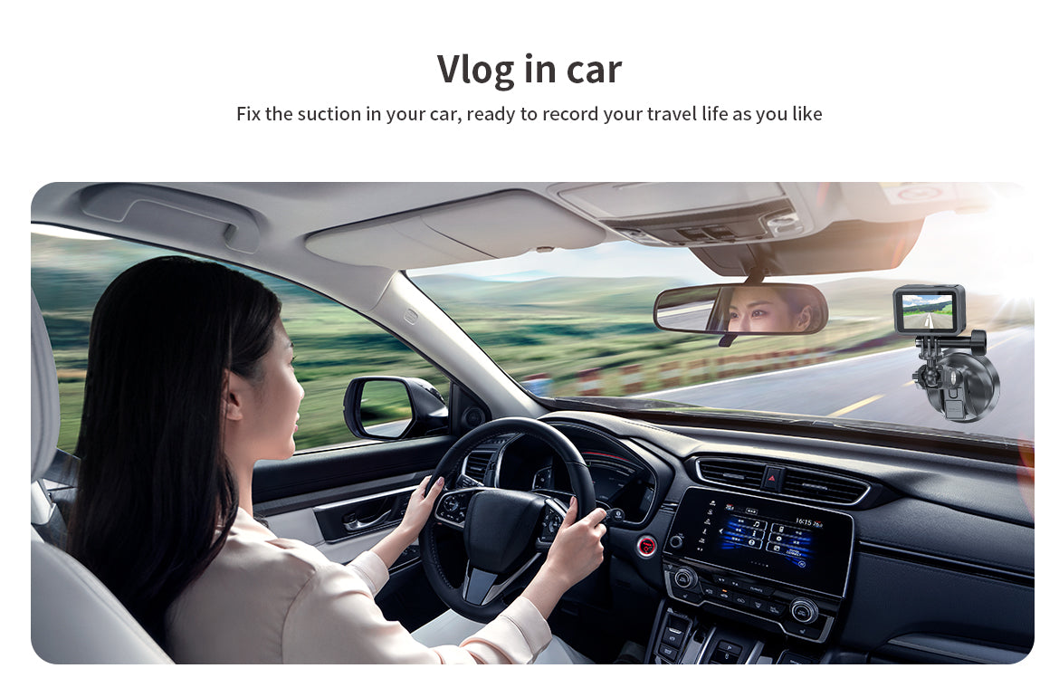 7. Fix the suction in your car, ready to record your travel life as you like.