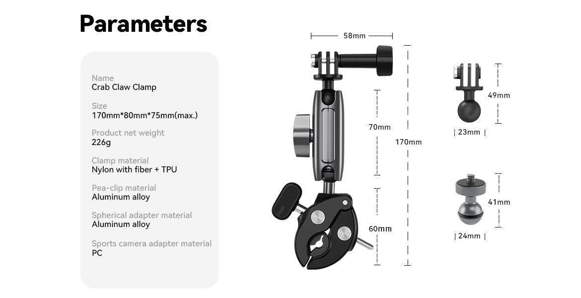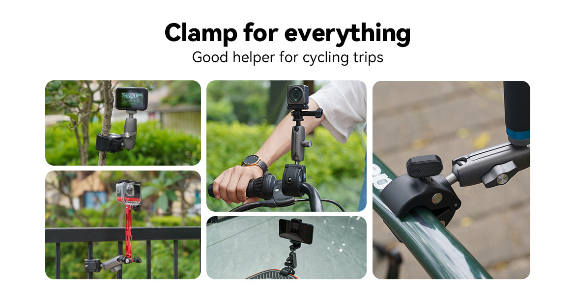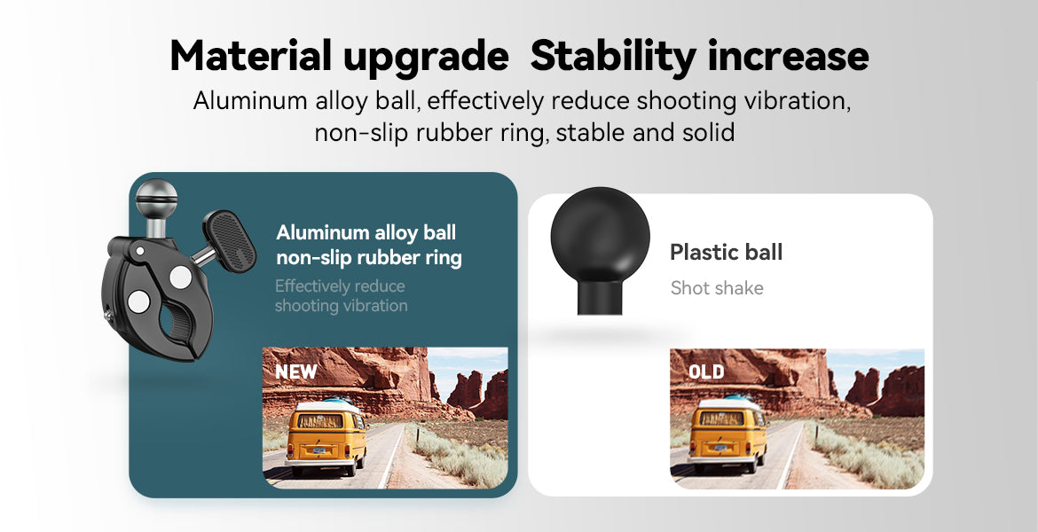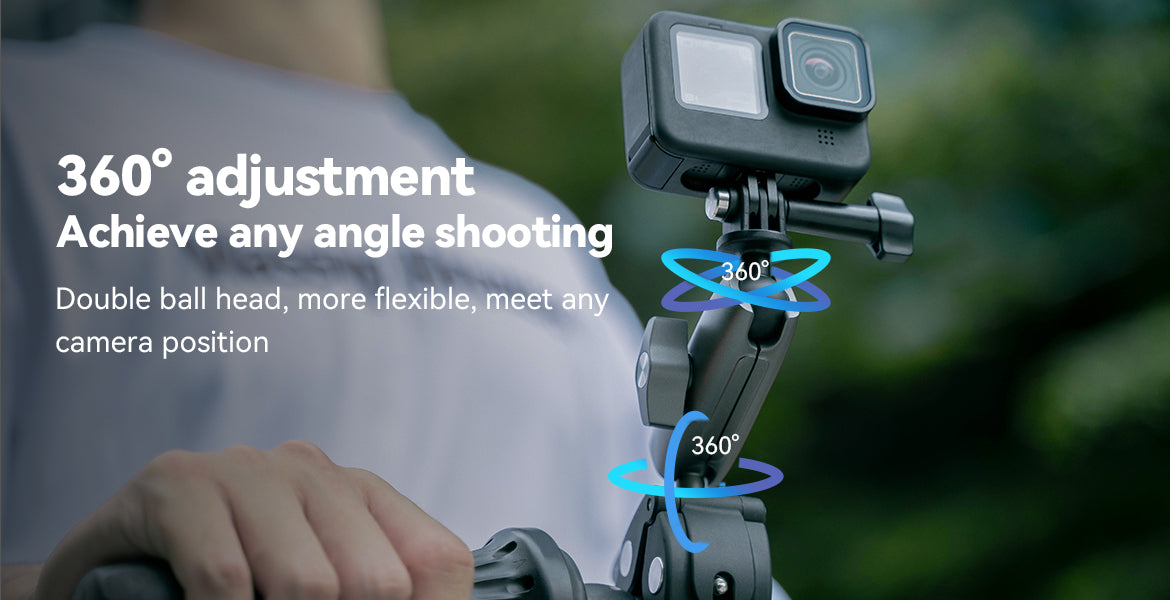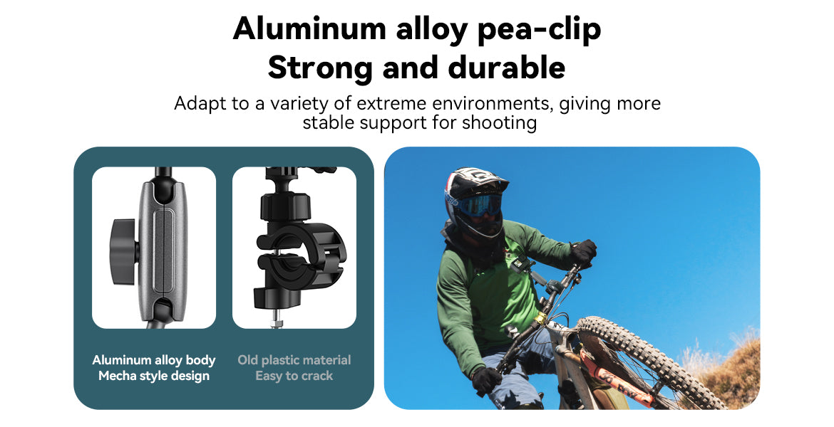 2. Aluminum alloy ball head, plus anti-slip rubber ring, stable and firm. Compared with the plastic ball head, it is sturdy and durable, effectively reducing the shooting vibration during riding and providing more stable support.